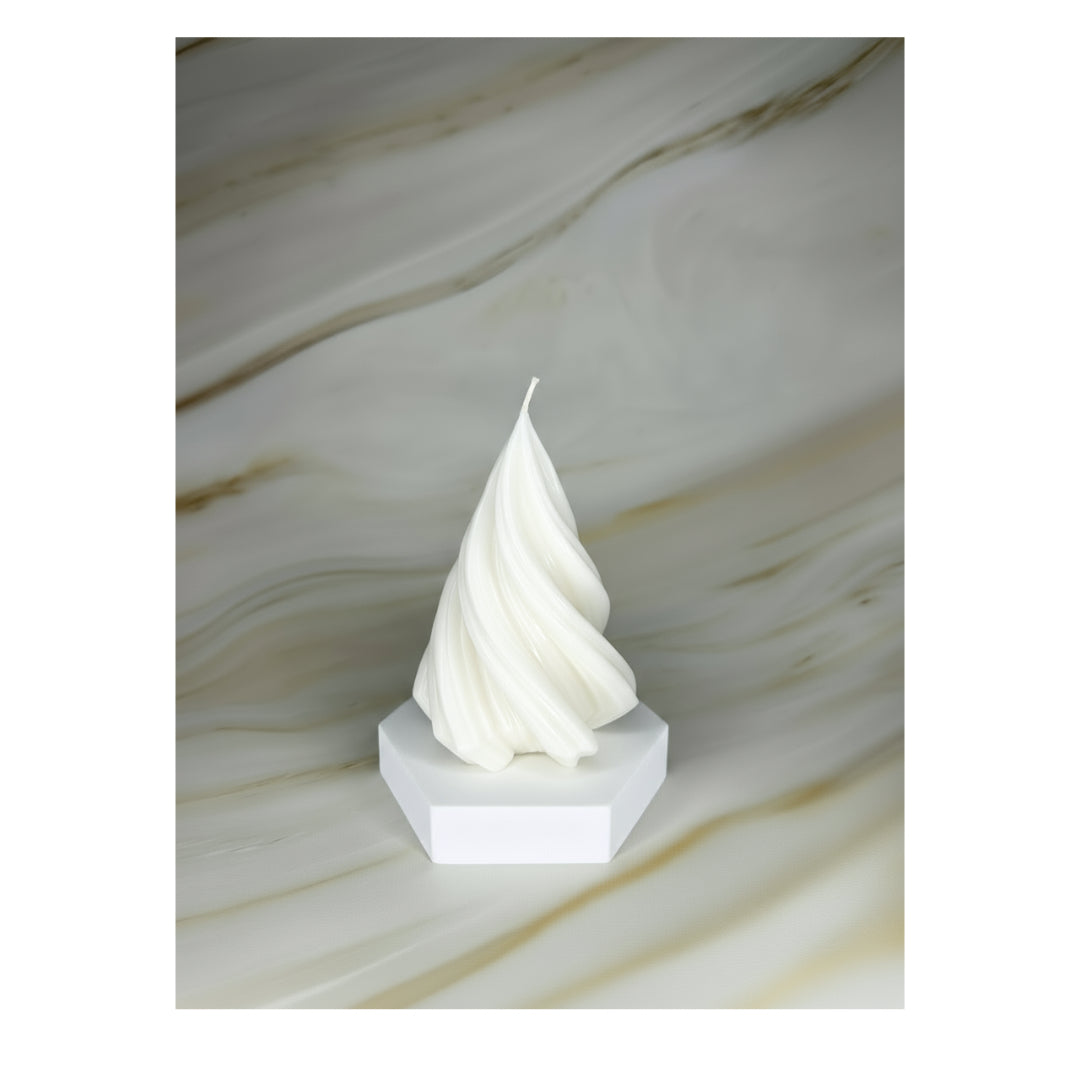 Realizzata a mano con cera di soia di alta qualità, questa candela presenta una silhouette a spirale che richiama i movimenti del vento e della neve, con delicate sfumature che la rendono un autentico pezzo decorativo.