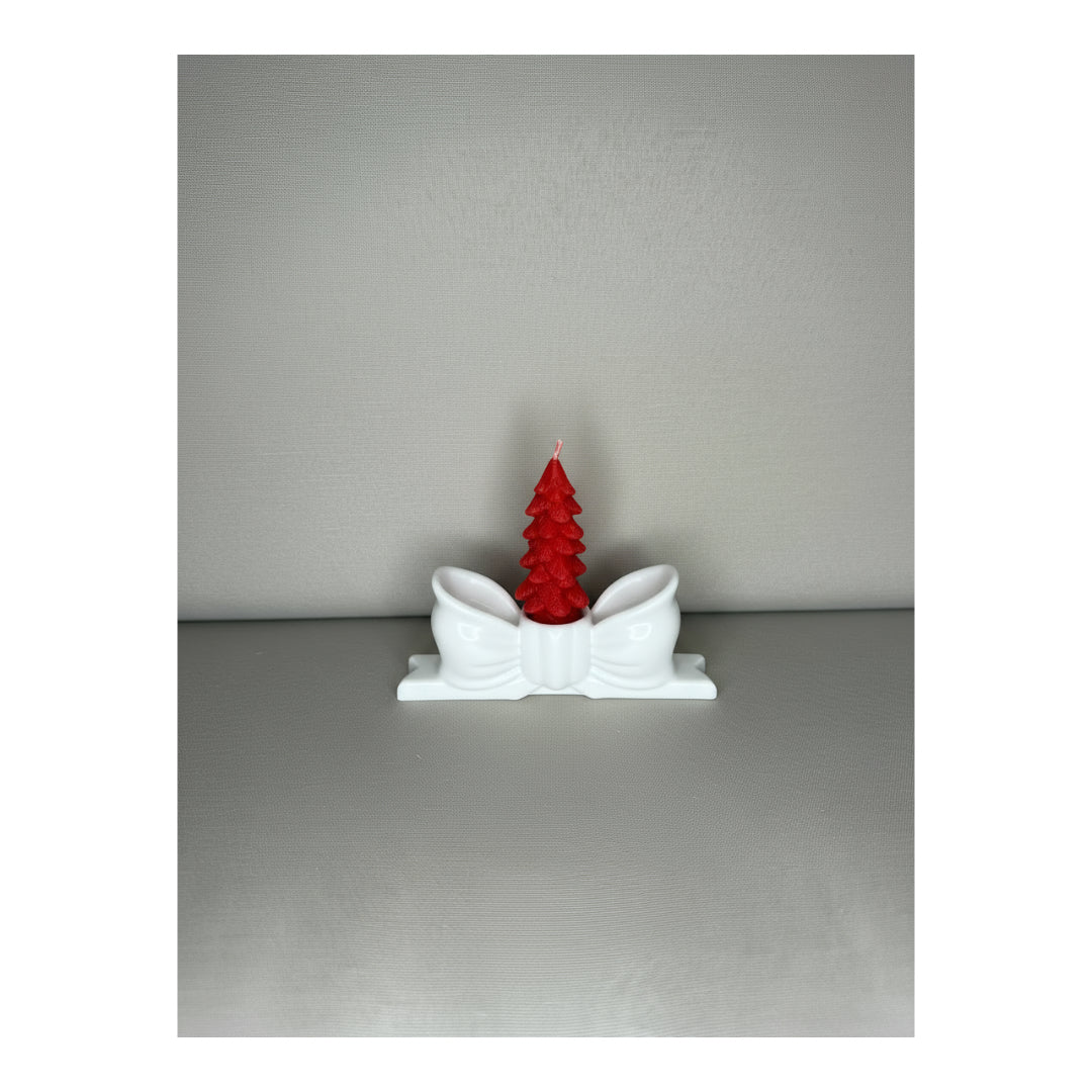 Il nostro Fiocco Natalizio racchiude un delicato alberello in cera di soia, realizzato e colato a mano con cura artigianale. La base a fiocco rosso dona un tocco raffinato e festoso, perfetto per arricchire il tuo arredamento o come idea regalo unica e originale.