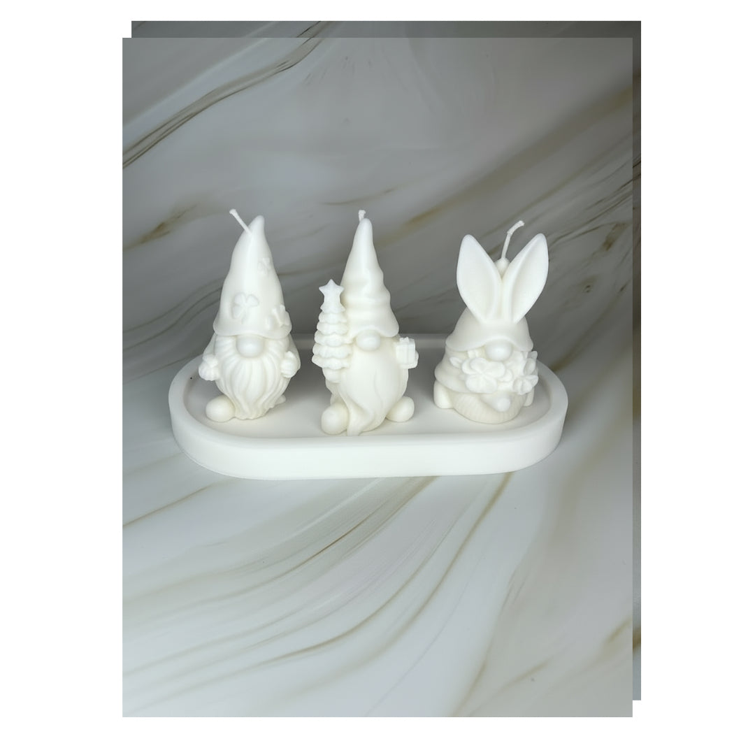 Porta un tocco di magia nordica nella tua casa con il Tris di Gnomi del bosco, un set di tre candele artigianali in cera di soia 100% naturale.