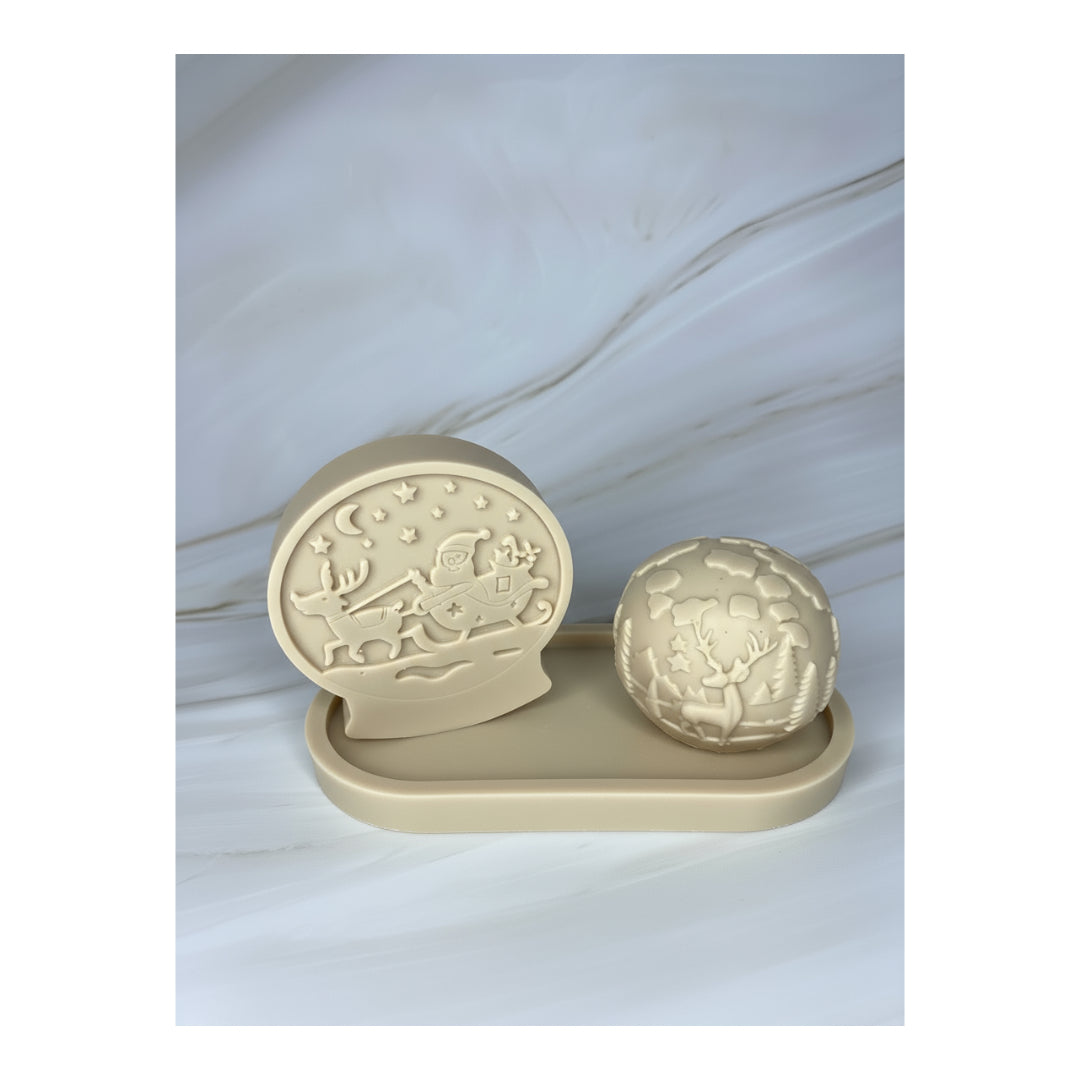 Un’elegante celebrazione dell’inverno prende forma nel set “Sfere Incantate”, composto da due raffinate candele artigianali in cera di soia 100% naturale, adagiate su un vassoio coordinato.